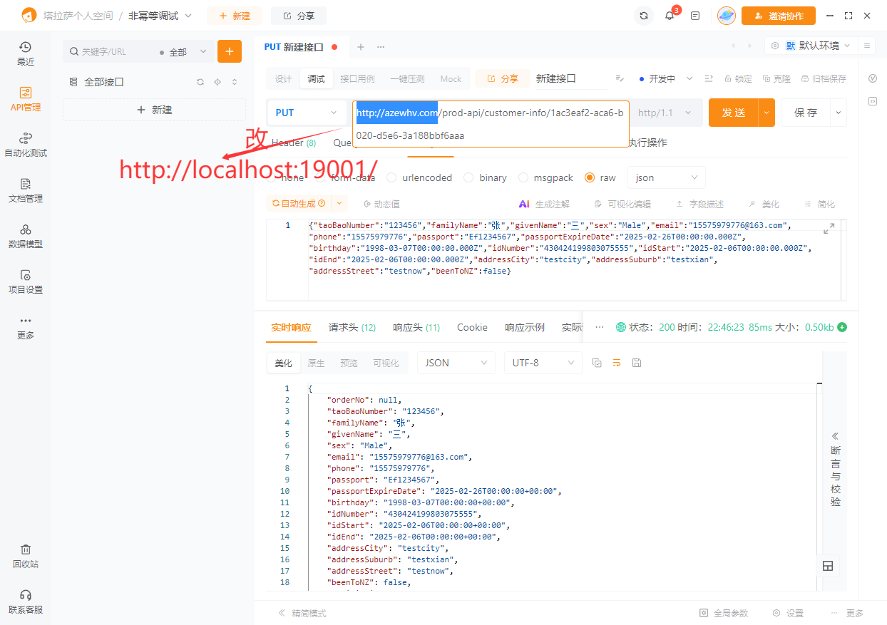 将之前接口的 前面域名那一段替换成本地API的路径。