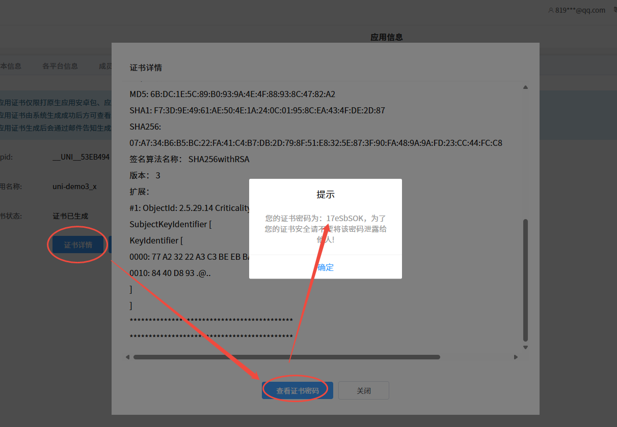 证书密码方式:开发者中心进行获取