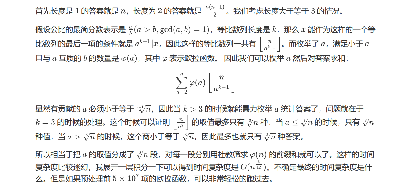 那么我们分段打表出上面那个分数的前缀和,然后只用计算剩下的一部分。求逆元用的写法,先乘起来再求逆元。