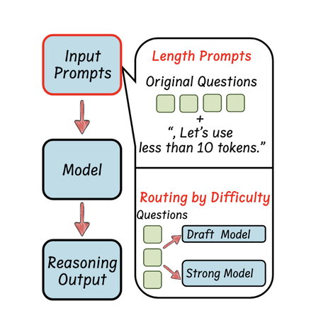 从输入提示的角度来看,这些工作的重点是通过施加长度约束,或根据输入提示的特性来引导大型语言模型(LLM),以实现简洁高效的推理。