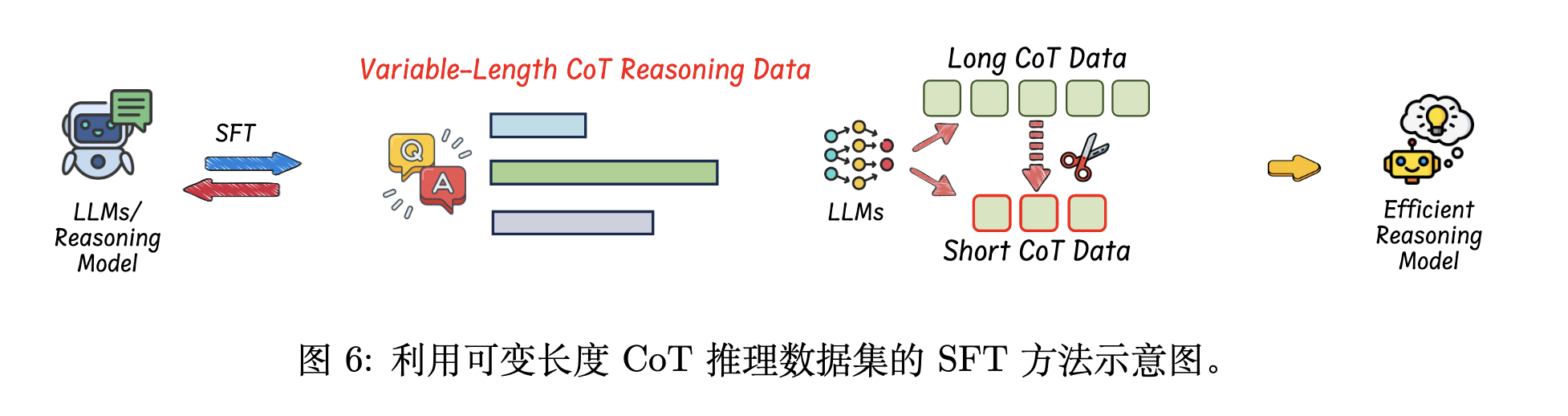 使用可变长度 CoT 数据的监督微调,倾向于在监督微调SFT过程中微调模型