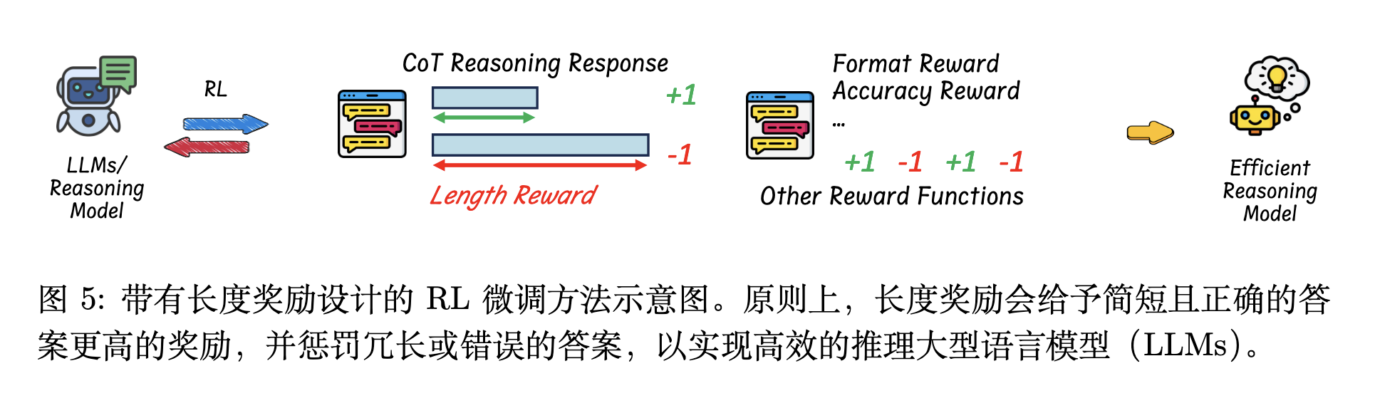 在RL中加入长度奖励(Length Reward),引导它生成简洁的推理。