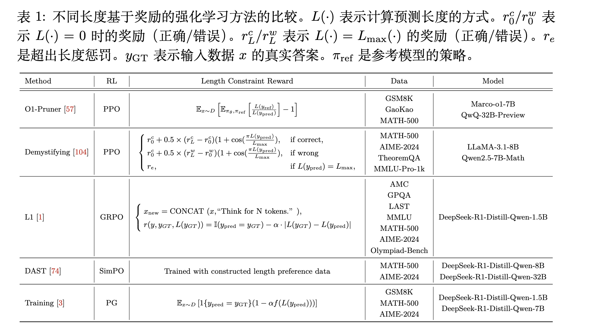 下表是相关工作提出的Length Reward