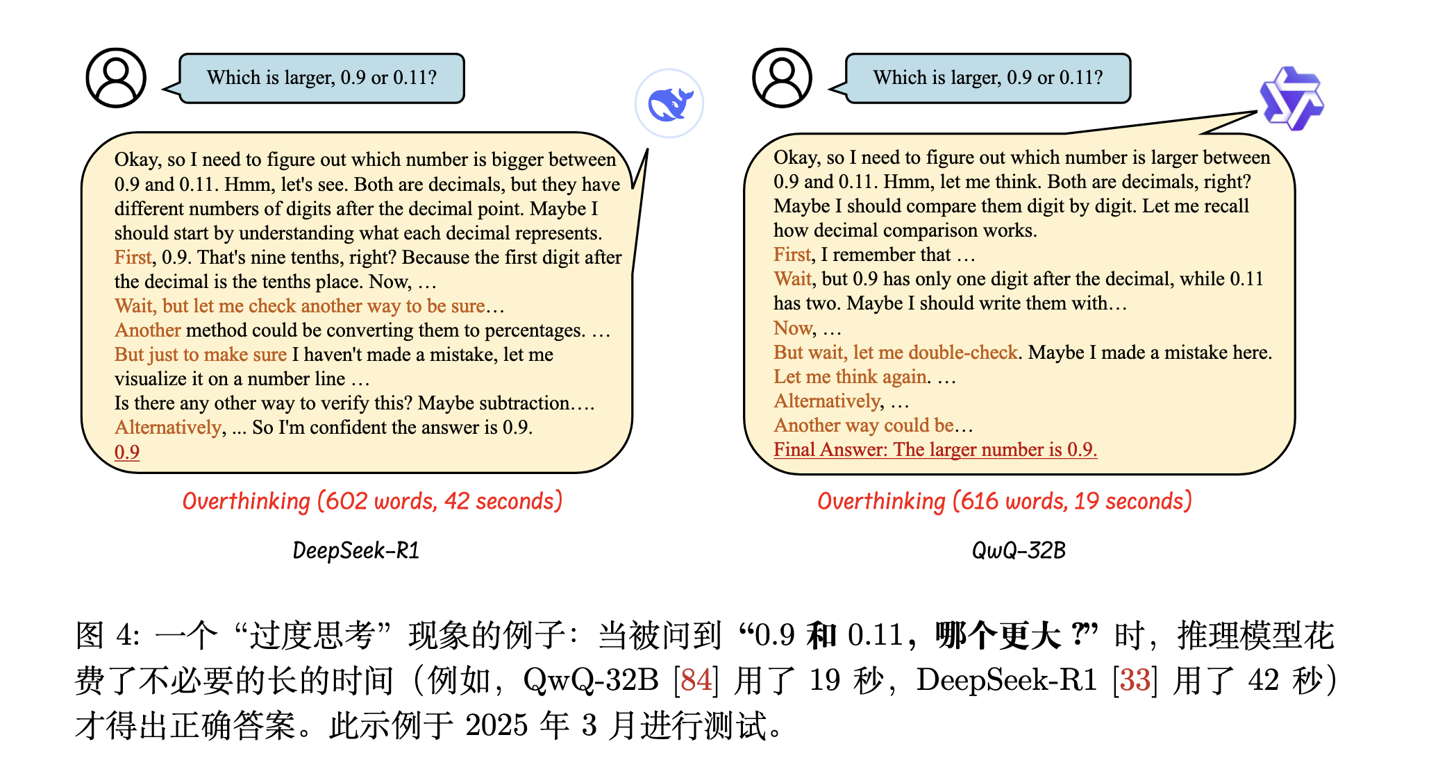 Overthinking 指的是长链 CoT 推理模型中生成过于详细或不必要的复杂推理步骤的情况,最终降低了它们的问题解决效率。