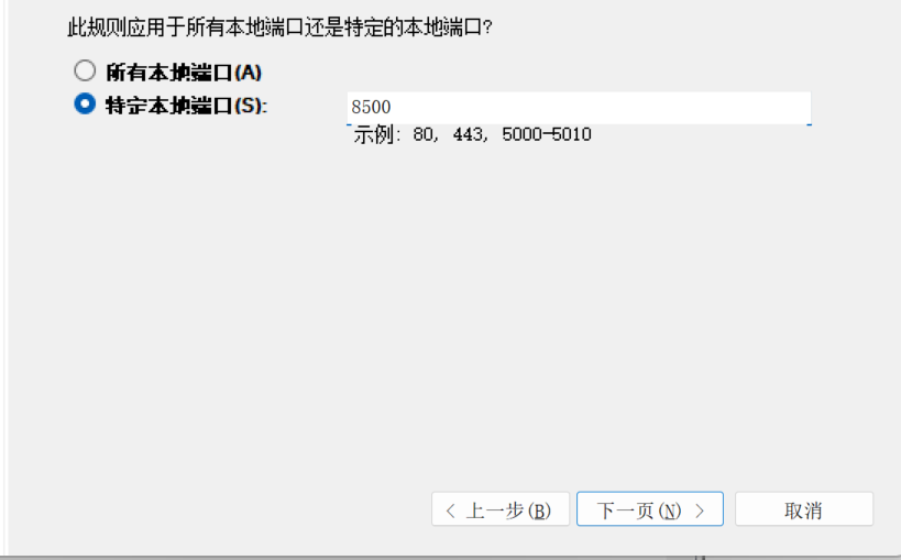 特定端口输入8500 然后无脑点击下一页