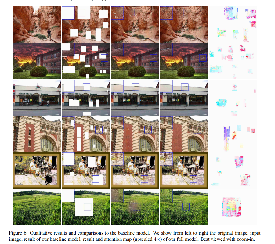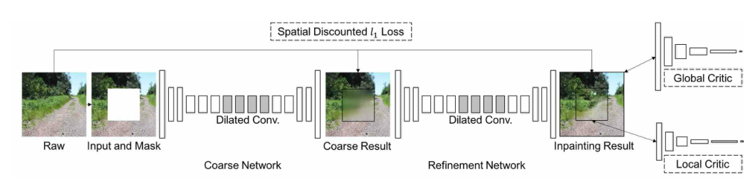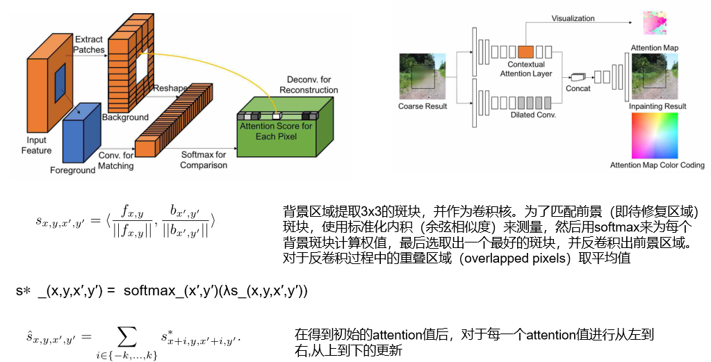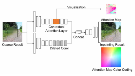 之前的基于深度学习的图像修复方法展现了很大的潜力,这些方法都能生成看似合理的图像结构及纹理,但在修复区域的边界,经常会生成扭曲的结构和模糊的图像,这是因为卷积神经网络无法从图像较远的区域提取信息导致的。