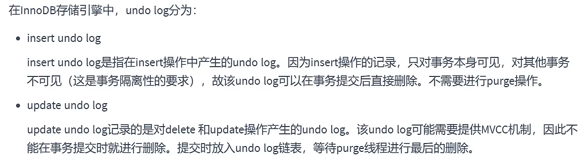 undo log日志里面不仅存放着数据更新前的记录,还记录着RowID、事务ID、回滚指针。其中事务ID每次递增,回滚指针第一次如果是insert语句的话,回滚指针为NULL,第二次update之后的undo log的回滚指针就会指向刚刚那一条undo log日志,依次类推,就会形成一条undo log的版本链,方便找到该条记录的历史版本: