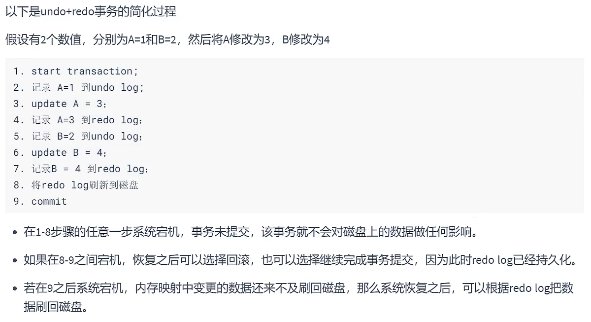 持久性由内存+ redo log 来保证,mysql 修改数据同时在内存和 redo log 记录这次操作,事务提交的时候通过 redo log 刷盘,宕机的时候可以从 redo log 恢复。