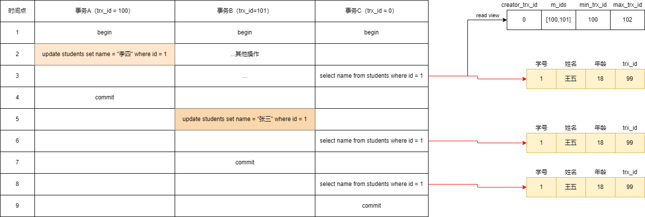 最后一个 select 有 read view!上图忽略了