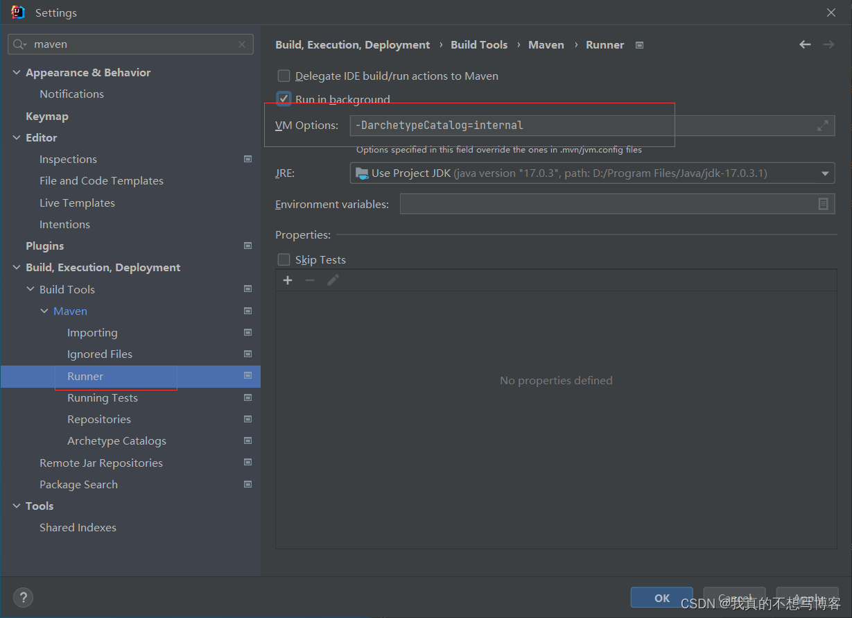 -DarchetypeCatalog=internal,把这段代码复制进VM开头的那框框里面,注意那个Delegate开头的那个不要勾了