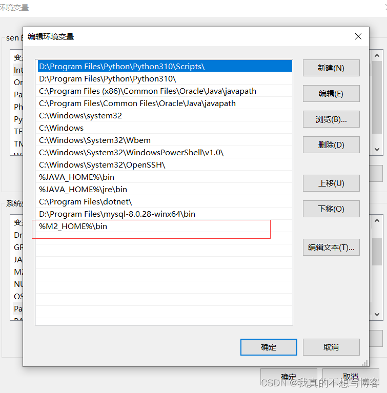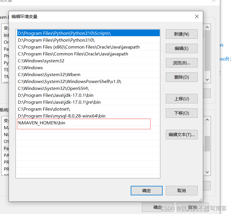 然后进入path变量里面进行配置,%MAVEN_HOME%\bin