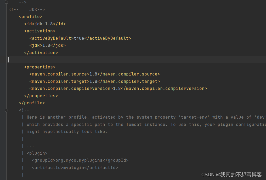 找到profiles标签,然后配置如下信息,jdk版本可以换成你喜欢的不过建参照Maven适配的jdk版本去配置,jdk与maven适配关系请参考:Maven – Maven Releases History