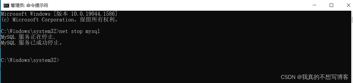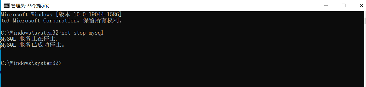 1、用管理员权限运行cmd,确保MySQL服务已经关闭,运行net stop mysql命令关闭数据库