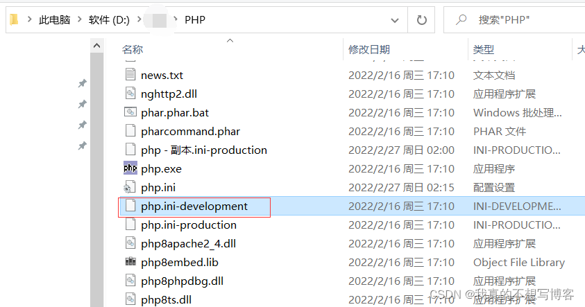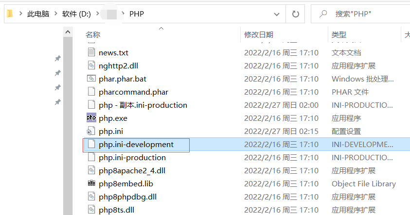 找到这个development文件复制一份副本,对复制的副本进行更改,把development的副本改成php.ini文件,然后用记事本或者其他编辑器打开