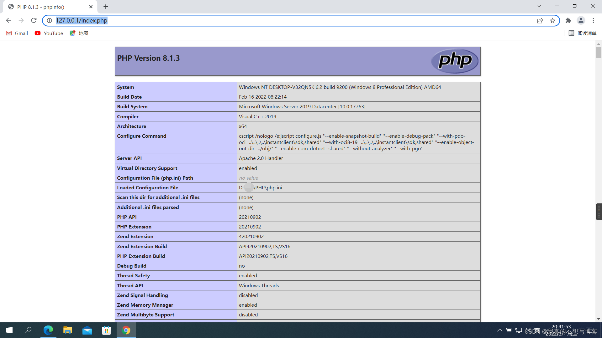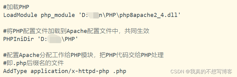 PHP是二进制文件免安装的,只需要在Apache中配置好PHP就会自动对php文件进行解析