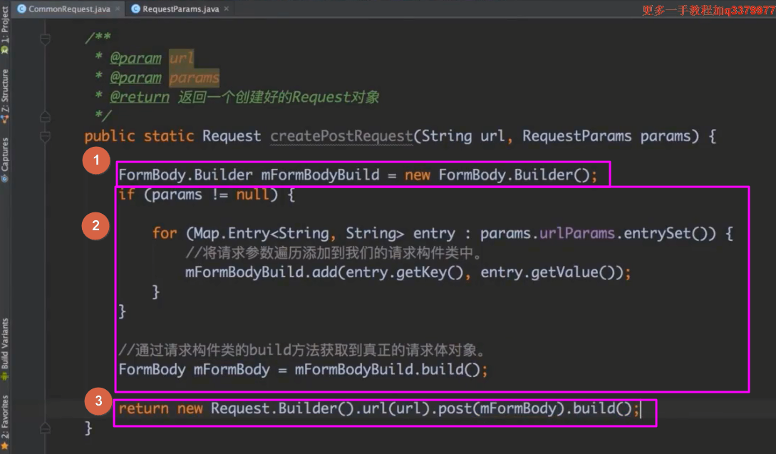 【封装的三部曲】①建立FormBody;②在FormBody中添加参数,然后通过FormBody的构建者对象真正的生成一个FormBody对象;③由FormBody生成request对象;