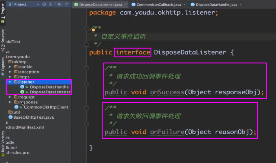 【思路】封装三大块:request请求;okhttp核心;callBack回调处理;