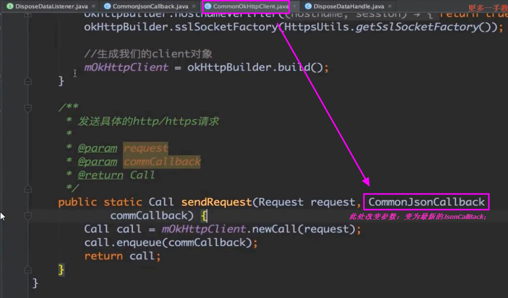 【应用层数据请求的发送】此处没有添加到任何与okhttp相关的代码,因此将以后框架更换之后,应用层的代码也不需要改变;