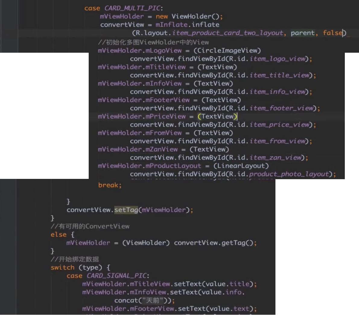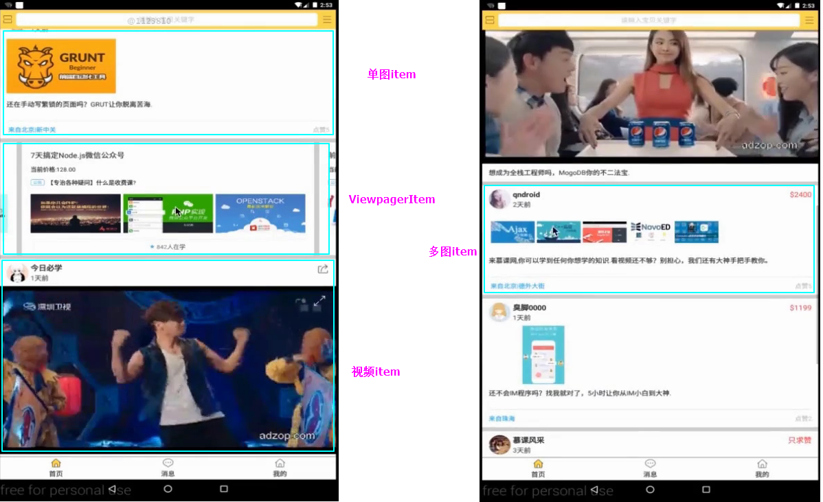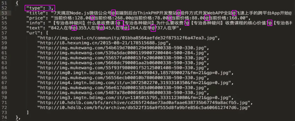 【需要加载的原始数据】type:3就是viewPager要加载的数据,都是使用符号“@”进行拼接在了一起;这样将二维数据转化为了一维的数据;
