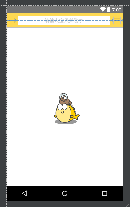 1 <LinearLayout xmlns:android="http://schemas.android.com/apk/res/android" 2 android:layout_width="match_parent" 3 android:layout_height="match_parent" 4 android:background="@color/color_cccccc" 5 android:orientation="vertical" 6 > 7 <!--titleBar--> 8 <RelativeLayout 9 android:layout_width="match_parent" 10 android:layout_height="wrap_content" 11 android:background="@color/color_fed952" 12 android:padding="8dp" 13 > 14 <TextView 15 android:id="@+id/qrcode_view" 16 android:layout_width="wrap_content" 17 android:layout_height="wrap_content" 18 android:layout_centerVertical="true" 19 android:background="@drawable/bar_code_scan_icon" 20 /> 21 22 <TextView 23 android:id="@+id/category_view" 24 android:layout_width="wrap_content" 25 android:layout_height="wrap_content" 26 android:layout_alignParentRight="true" 27 android:layout_centerVertical="true" 28 android:background="@drawable/category" 29 /> 30 <TextView 31 android:id="@+id/search_view" 32 android:layout_width="match_parent" 33 android:layout_height="wrap_content" 34 android:layout_marginLeft="10dp" 35 android:layout_marginRight="10dp" 36 android:layout_toLeftOf="@id/category_view" 37 android:layout_toRightOf="@id/qrcode_view" 38 android:background="@drawable/bg_home_edittext" 39 android:gravity="center" 40 android:padding="6dp" 41 android:text="@string/home_edittext_hint" 42 android:textColor="@color/color_cdcdcd" 43 android:textSize="16sp" 44 /> 45 </RelativeLayout> 46 47 <!--加载progressBar--> 48 <ImageView 49 android:id="@+id/loading_view" 50 android:layout_width="match_parent" 51 android:layout_height="match_parent" 52 android:background="@color/white" 53 android:scaleType="center" 54 android:src="@drawable/loading_data_anim" 55 /> 56 <ListView 57 android:id="@+id/list_view" 58 android:layout_width="match_parent" 59 android:layout_height="match_parent" 60 android:alwaysDrawnWithCache="false" 61 android:divider="@color/color_cccccc" 62 android:dividerHeight="10dp" 63 android:visibility="gone" 64 /> 65 </LinearLayout>