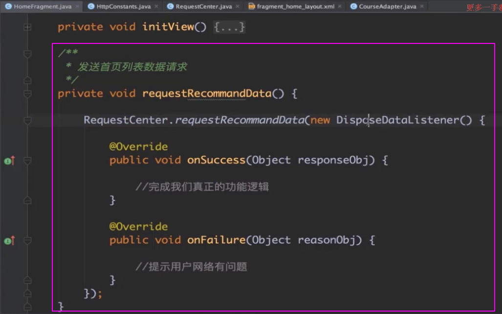 【对网络请求的再次封装】在一个应用中会有很多的请求,如果修改一个请求还需要查找到对应的页面,所以会在应用层再次封装一次;