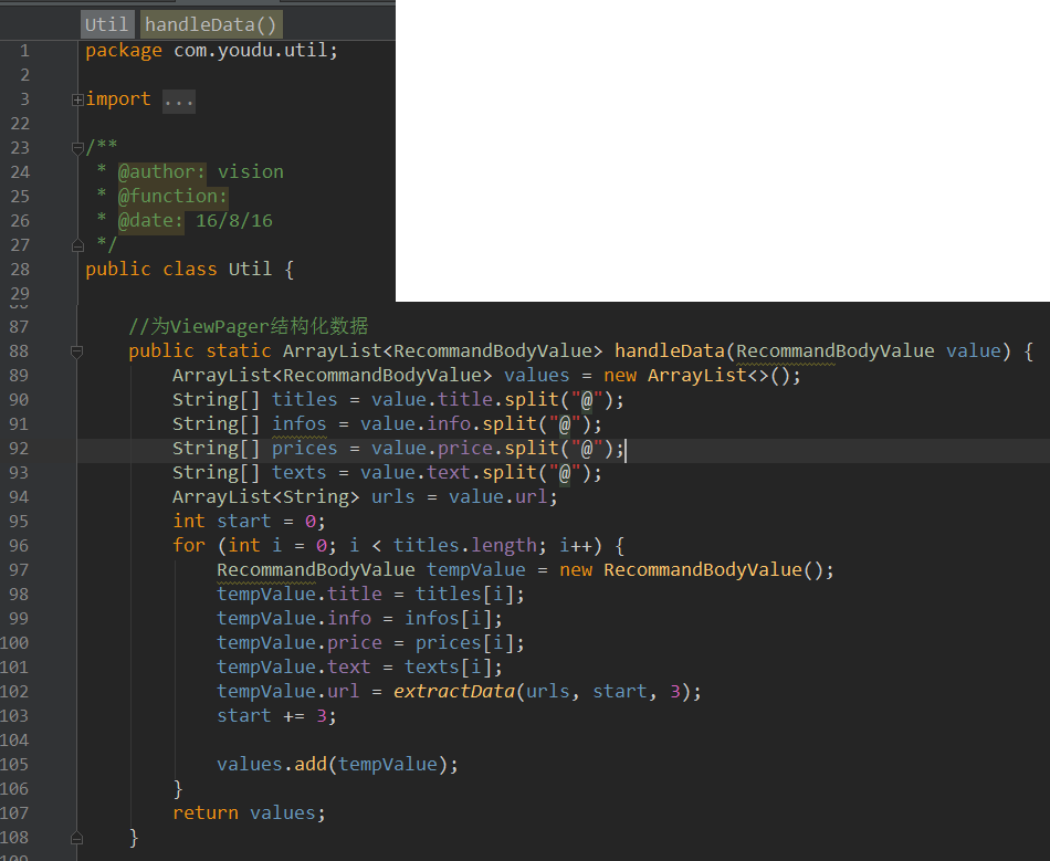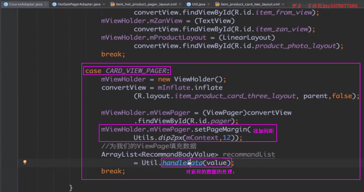 在哪个jsonObject后,通过字符串的分割,将合并的数据拆开,然后形成一个list;然后使用此list初始化这个pager;