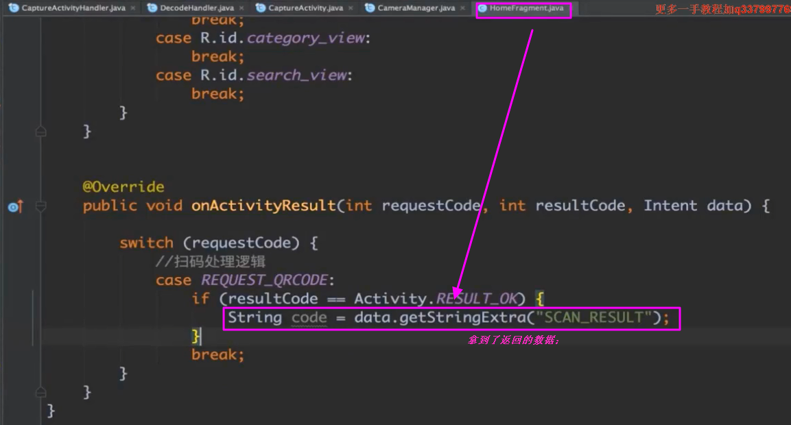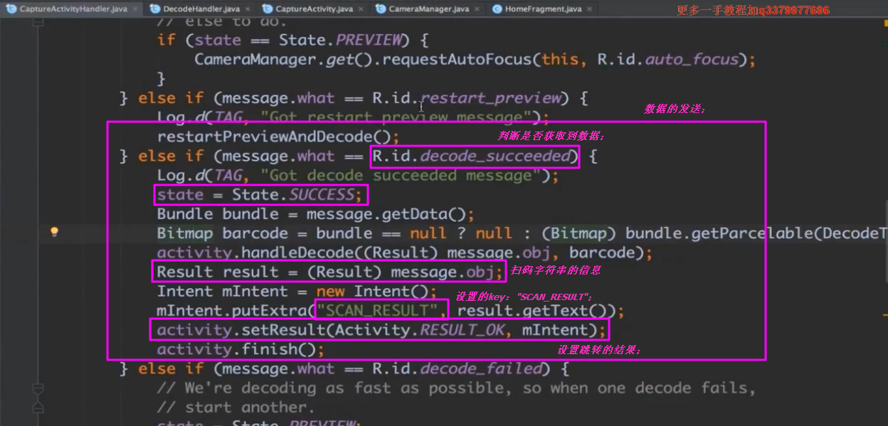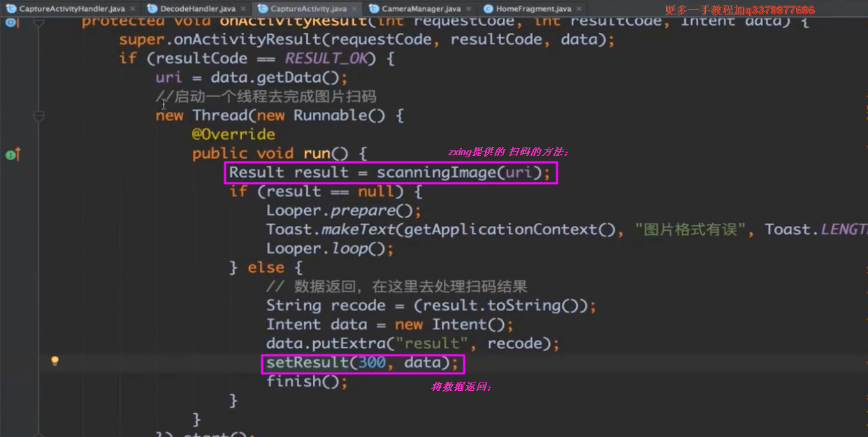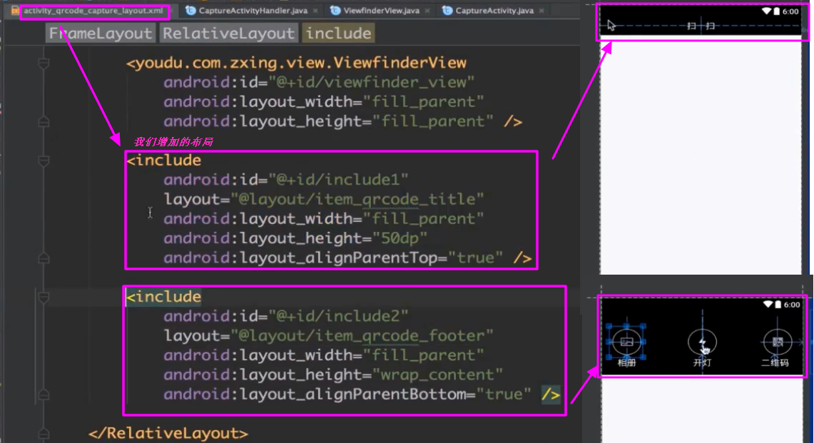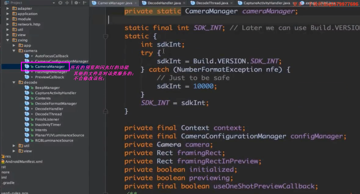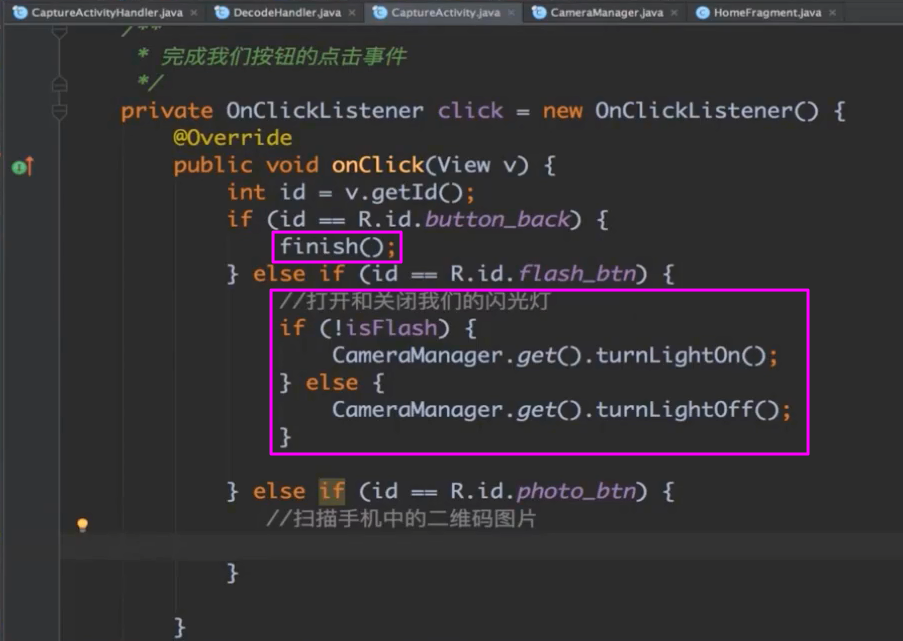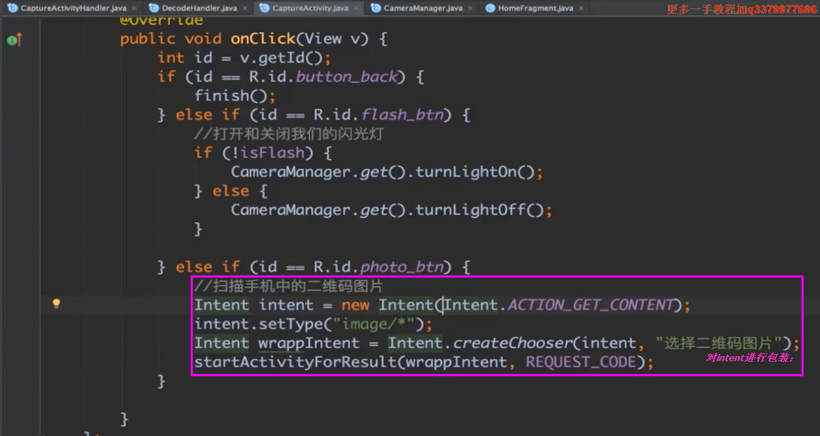【功能】本课程实现的扫码的功能是一个可以使用的产品级的应用方案,具有相册中选择图片/打开闪关灯/生成二维码的功能;