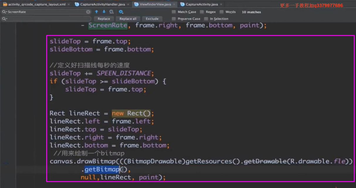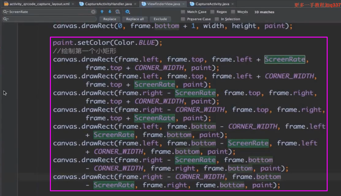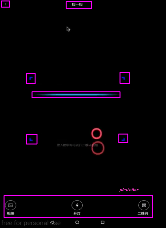 【完成扫描框和中间滑动的线】扫描边框使用的是8个小的矩形拼接而成的;