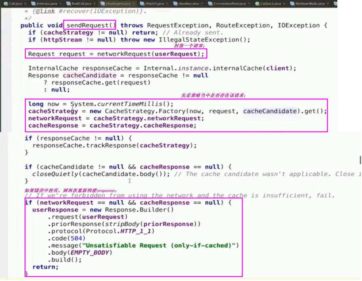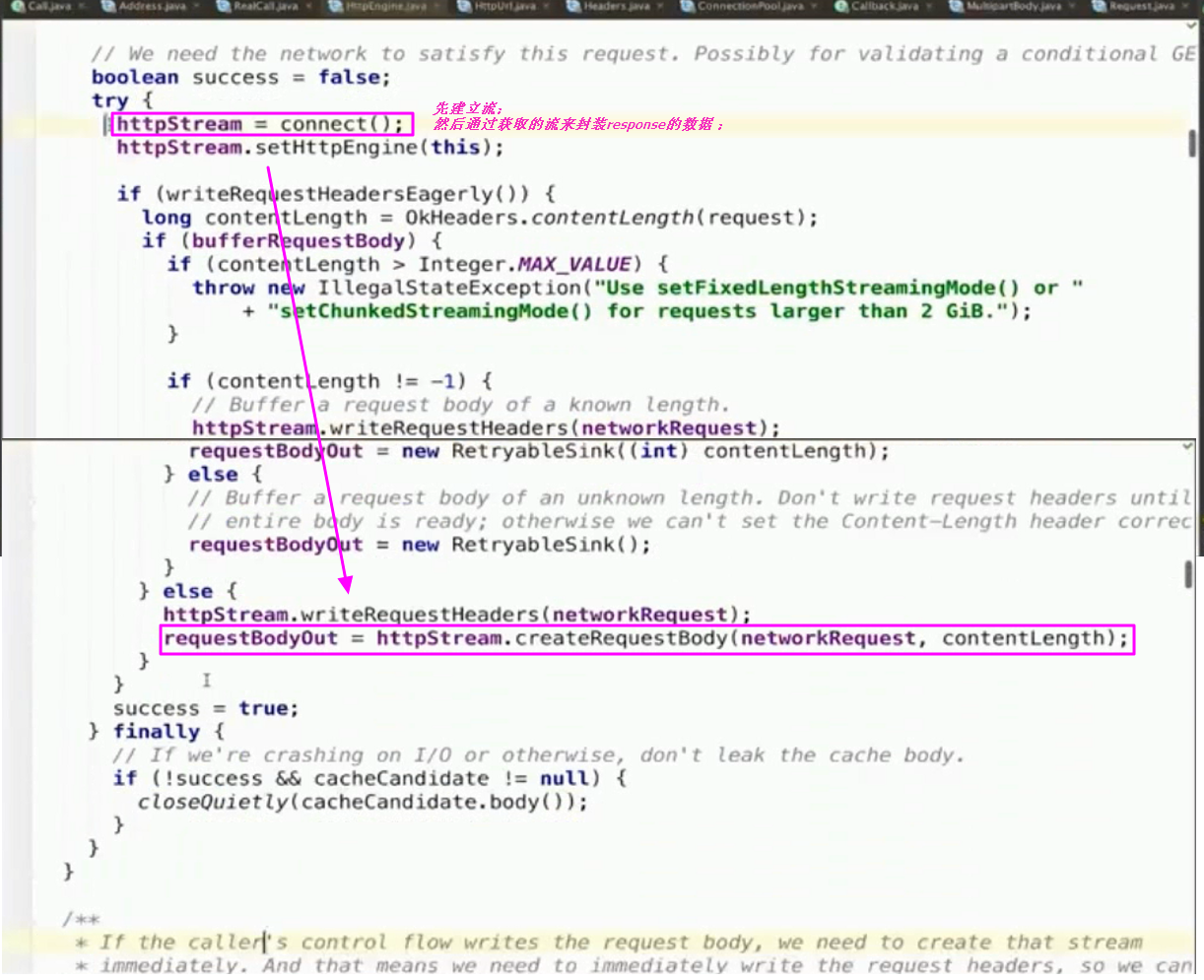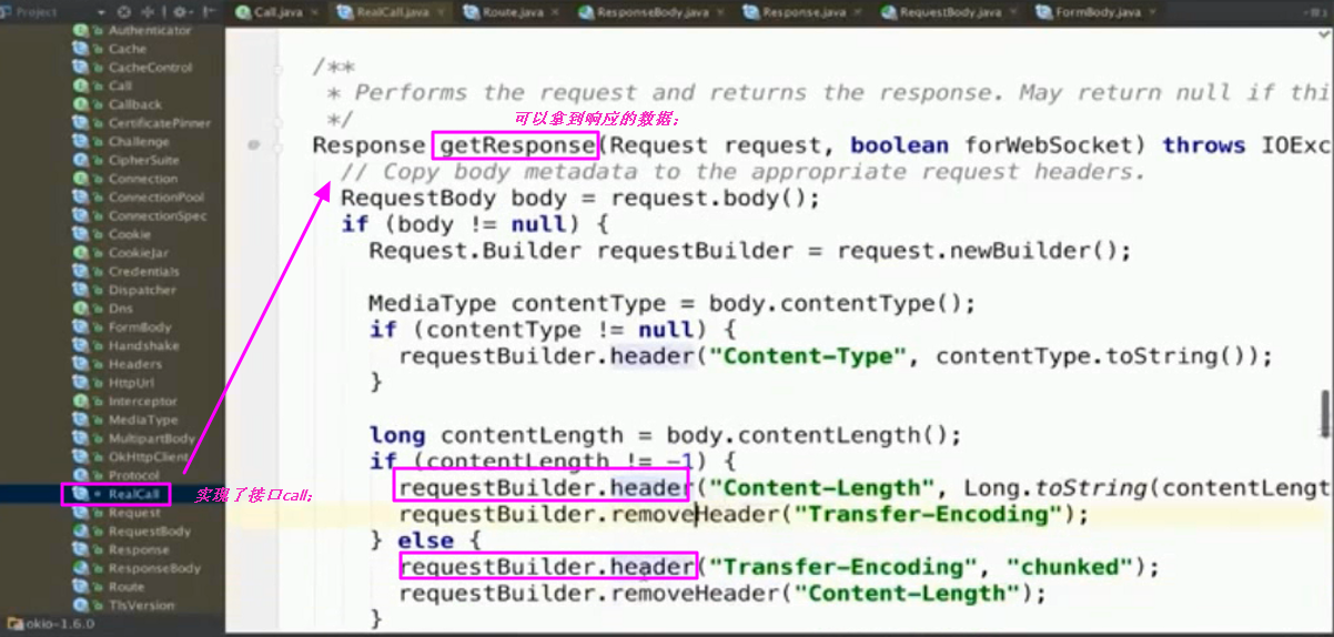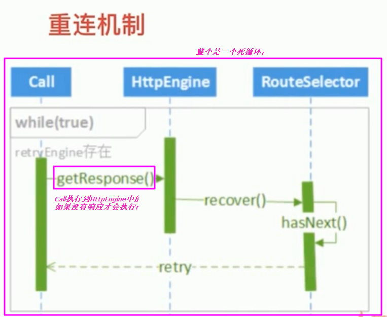 【流程】dispatcher将call数据放到队列中,在队列中依次执行Call,realCall对调用httpEngine,真正的构建connection和request,然后调用connect方法,获取最终的response;封装在respBody中,