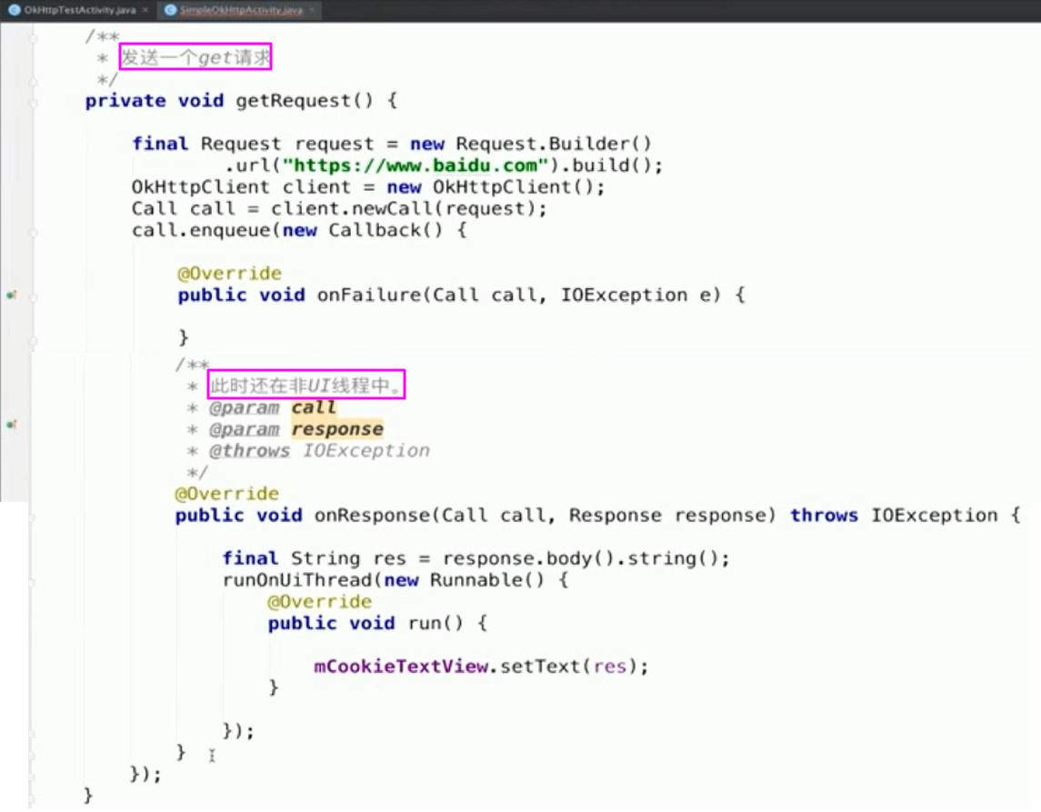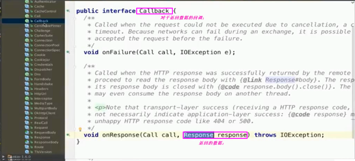 【回调方法】定义本次的请求的处理会有哪些回调的方法进行处理;