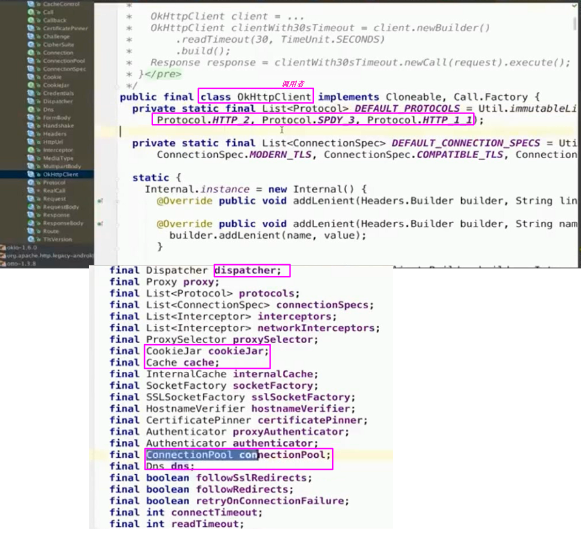 【okhttpClient类】所有流程的相互配合使用的是okhttpClient类进行配合的