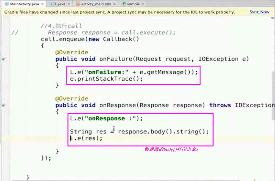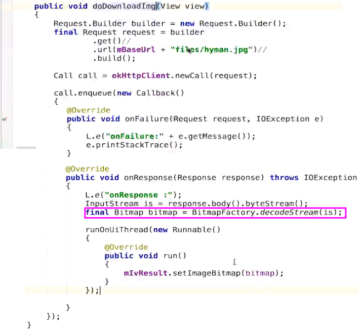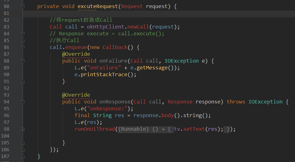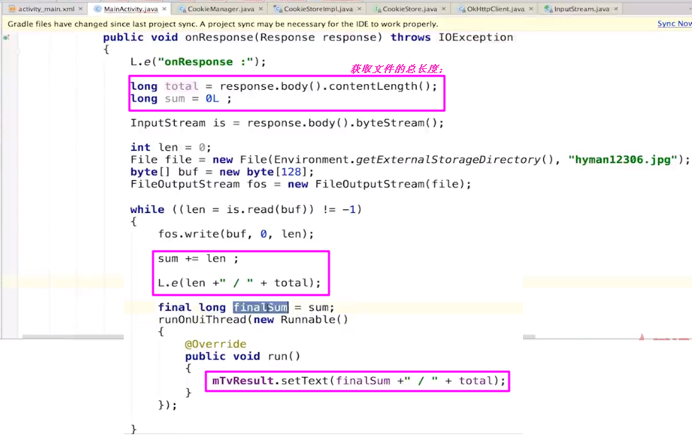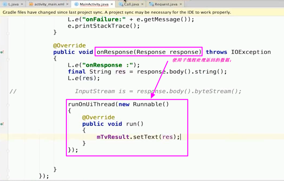 【onResponse注意】此时返回的数据是在子线程中,因为如果下载的是大的文件,在主线程中占据内存极大,无法处理;