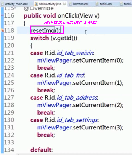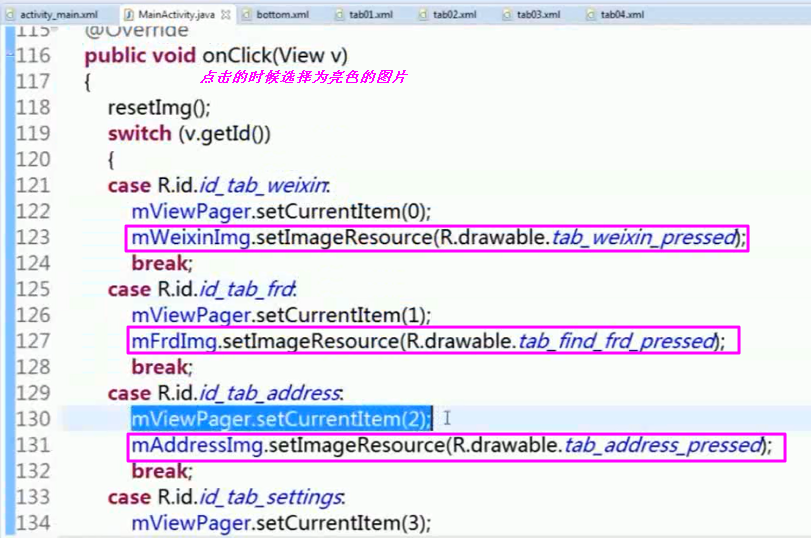 【Viewpager滑动事件的监听】滑动的时候,按钮的颜色也随着改变;可以将数字书写为常量;