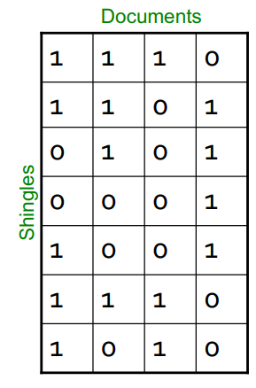 Set of k-shingles:S(\(D_{1}\)) = {ab,bc,ca}