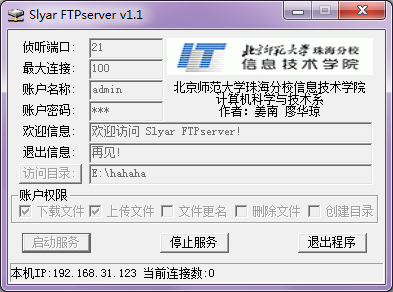 2.A同学架设FTP服务器,并设置用户名和密码,例如gao / gao