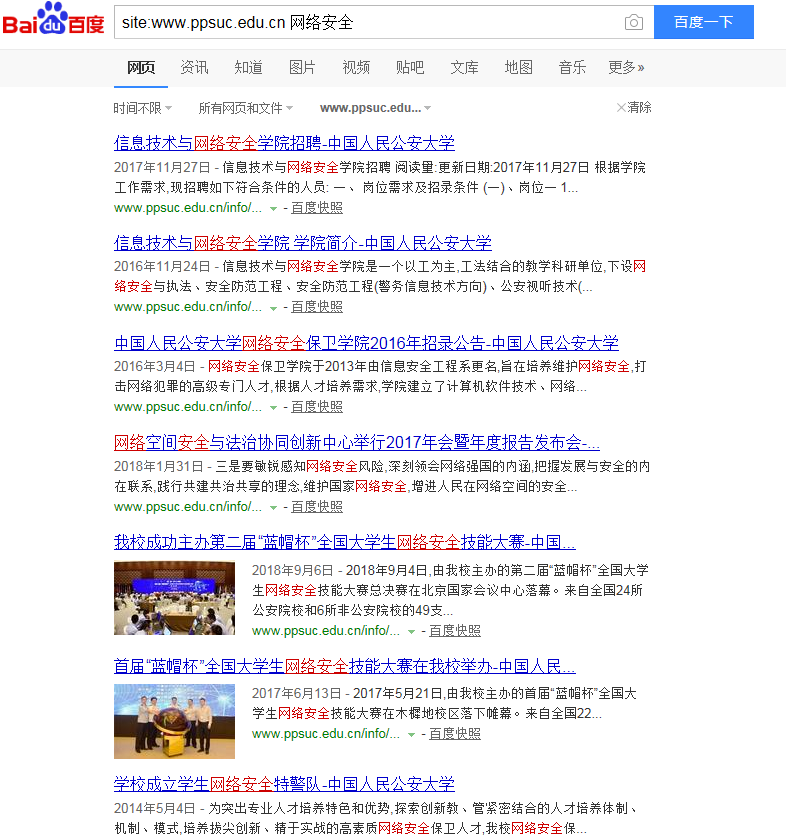 用百度或google搜索www.ppsuc.edu.cn中所有包含“网络安全”的网页。(附截图)
