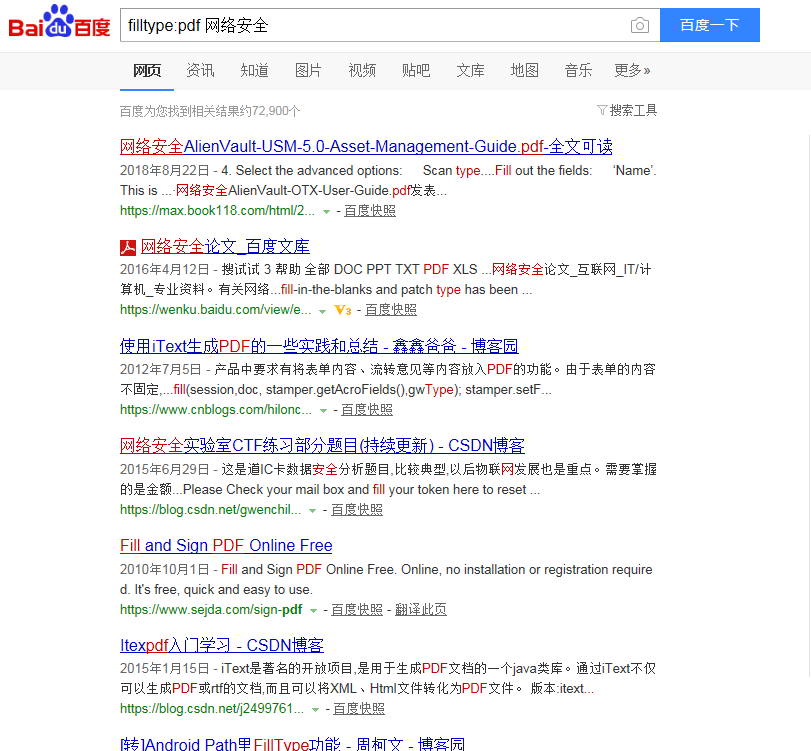 用百度或google搜索所有包含“网络安全”的pdf文档(附截图)
