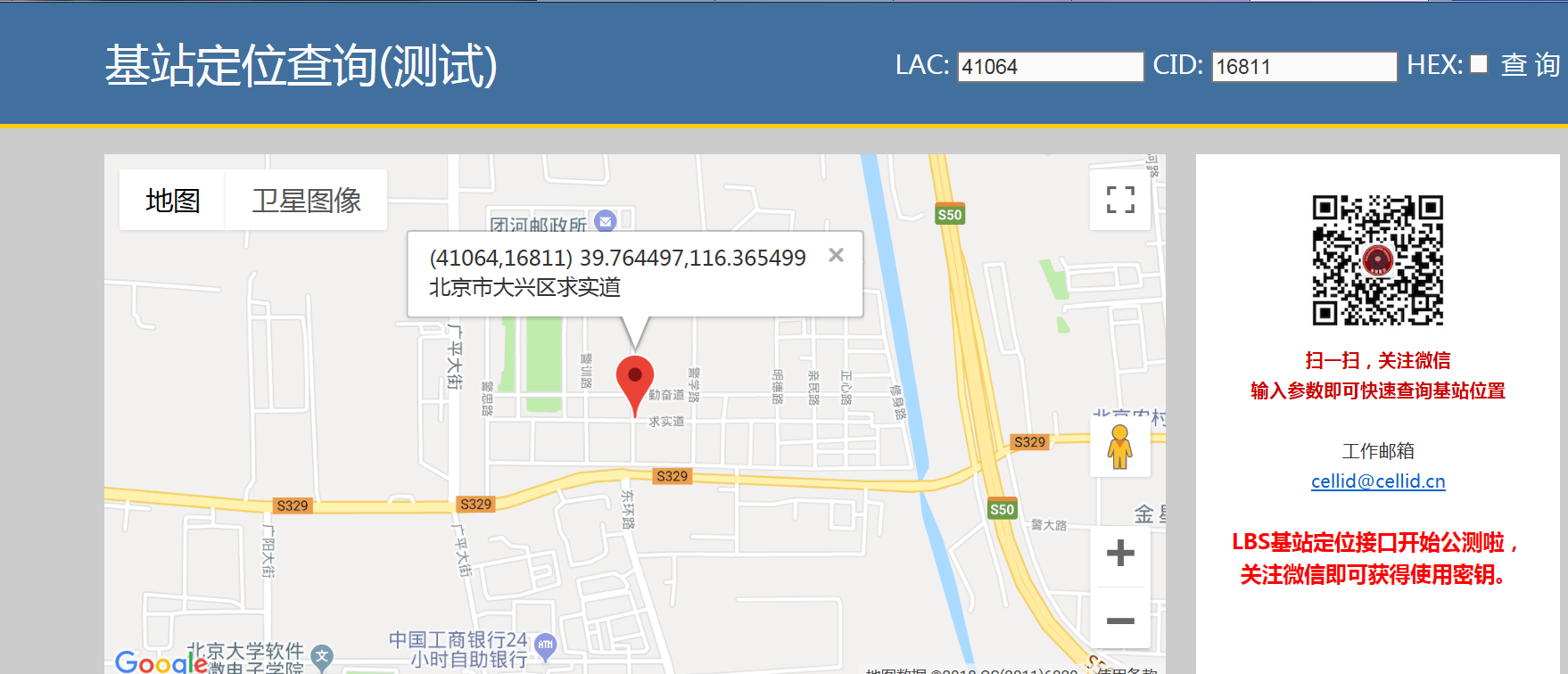 在一个案件中,获取了犯罪嫌疑人的LAC是41064,CID是16811,这个人可能在什么地方?(附截图)