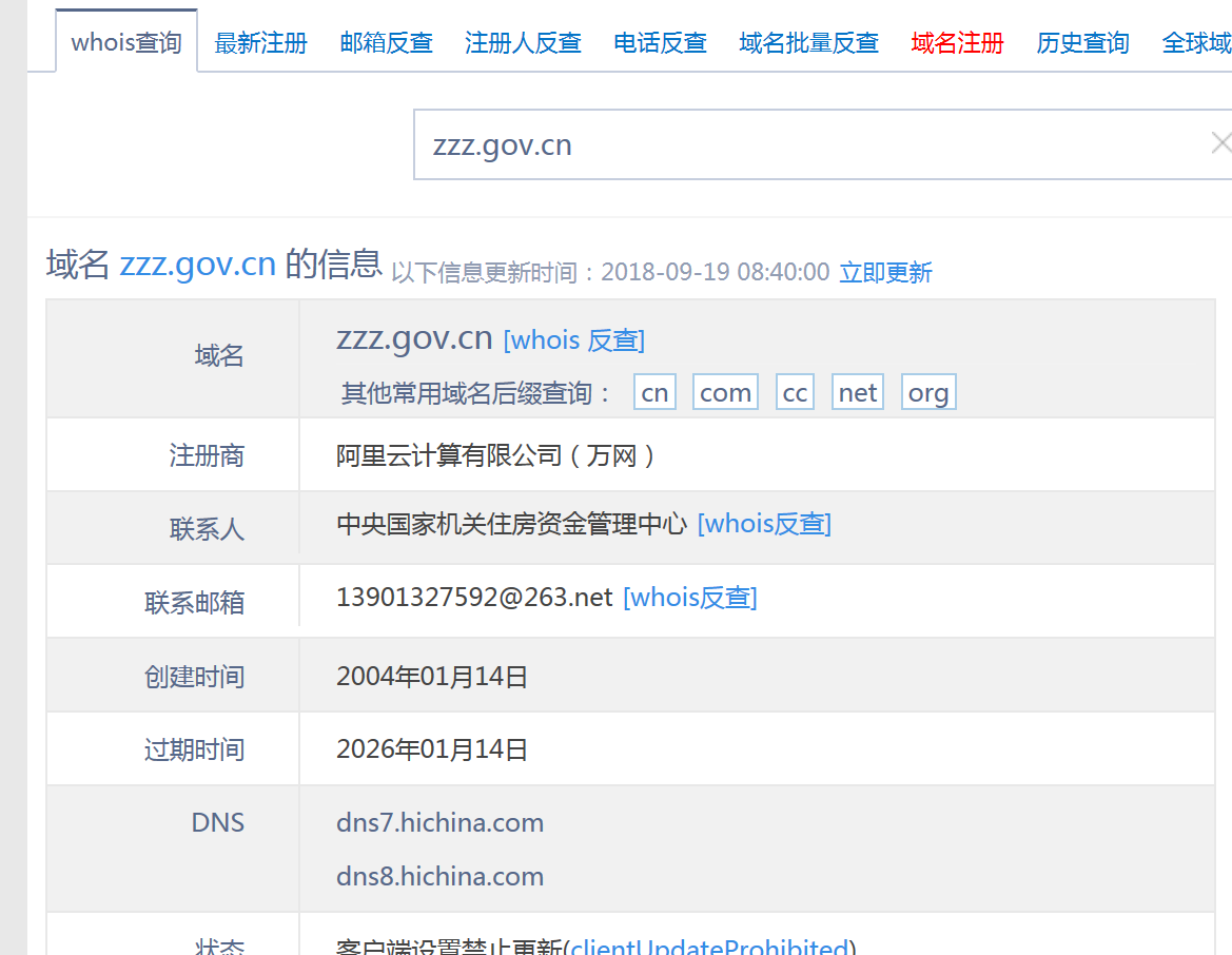 获取www.zzz.gov.cn域名注册时,注册人的邮箱是(附截图)