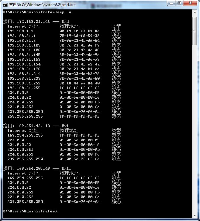 ARP欺骗前192.168.31.146正常缓存表(实验中的IP可能和本IP不一样)