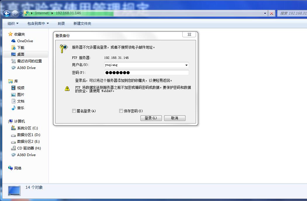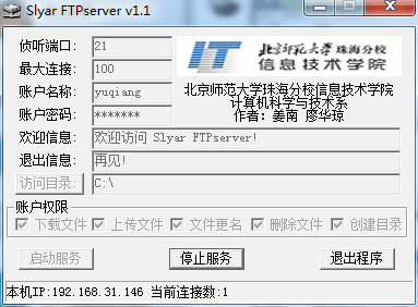 2.丁浩同学架设FTP服务器,并设置用户名和密码,yuqiang/dinghao