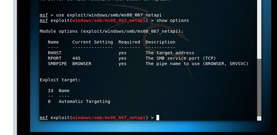 use exploit/windows/smb/ms08_067_netapi