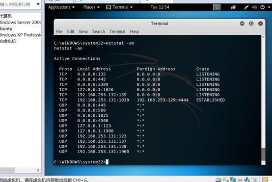 使用netstat -an命令查看端口是否开放,从图中可以看到已经开放3389端口。