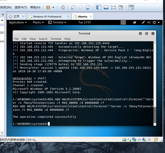 执行exploit命令后得到一个meterpreter命令行交互窗口