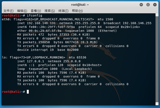 v 攻击环境:Kali-linxu, IP地址为:192.168.146.131