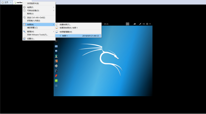 1、安装kali Linux并创建快照