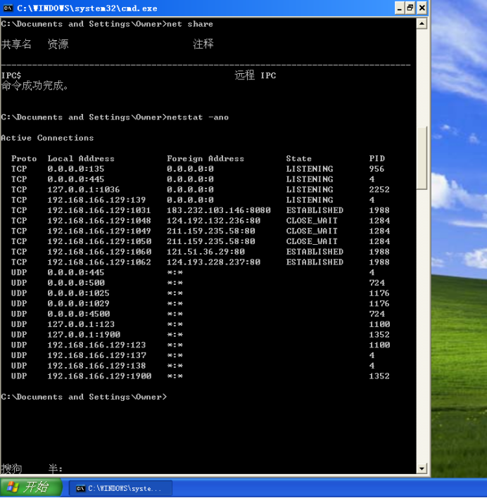 6、netstat -ano网络链接状态
