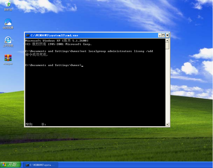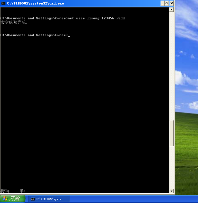10、 net user lisong 123456 /add添加用户名为lisong,密码为123456的用户