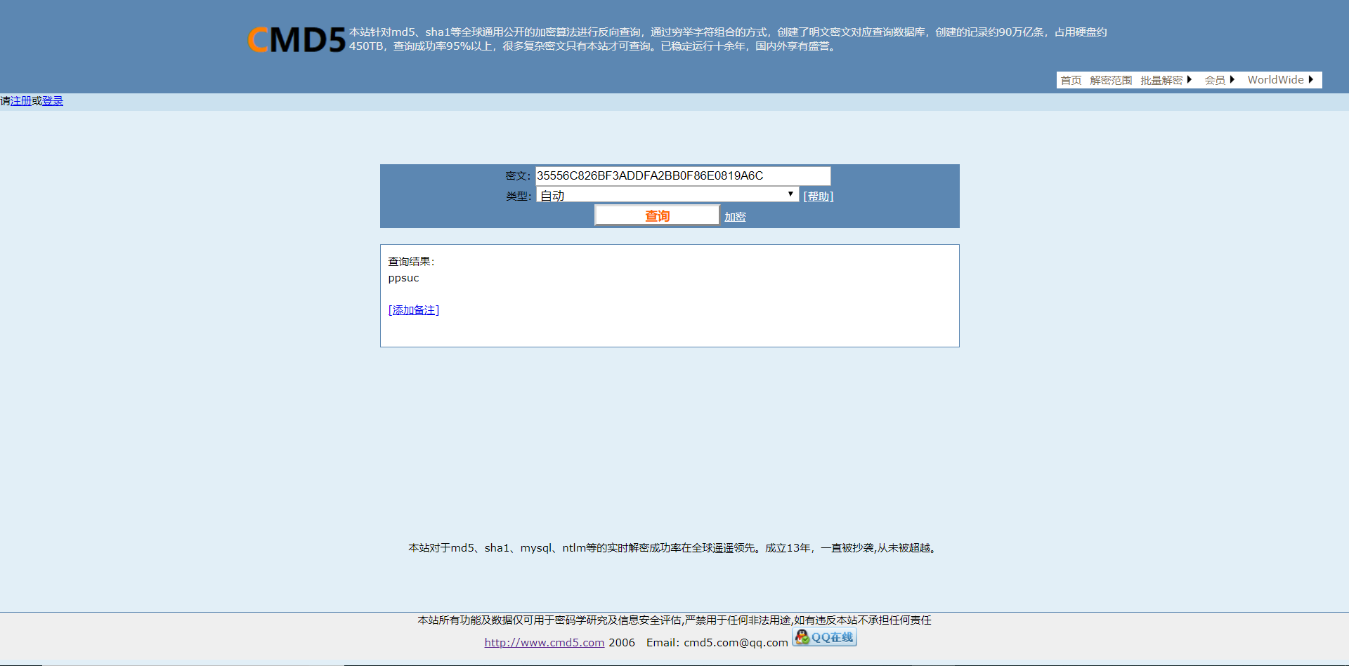 1. 请解密以下字符串35556C826BF3ADDFA2BB0F86E0819A6C。(附截图)