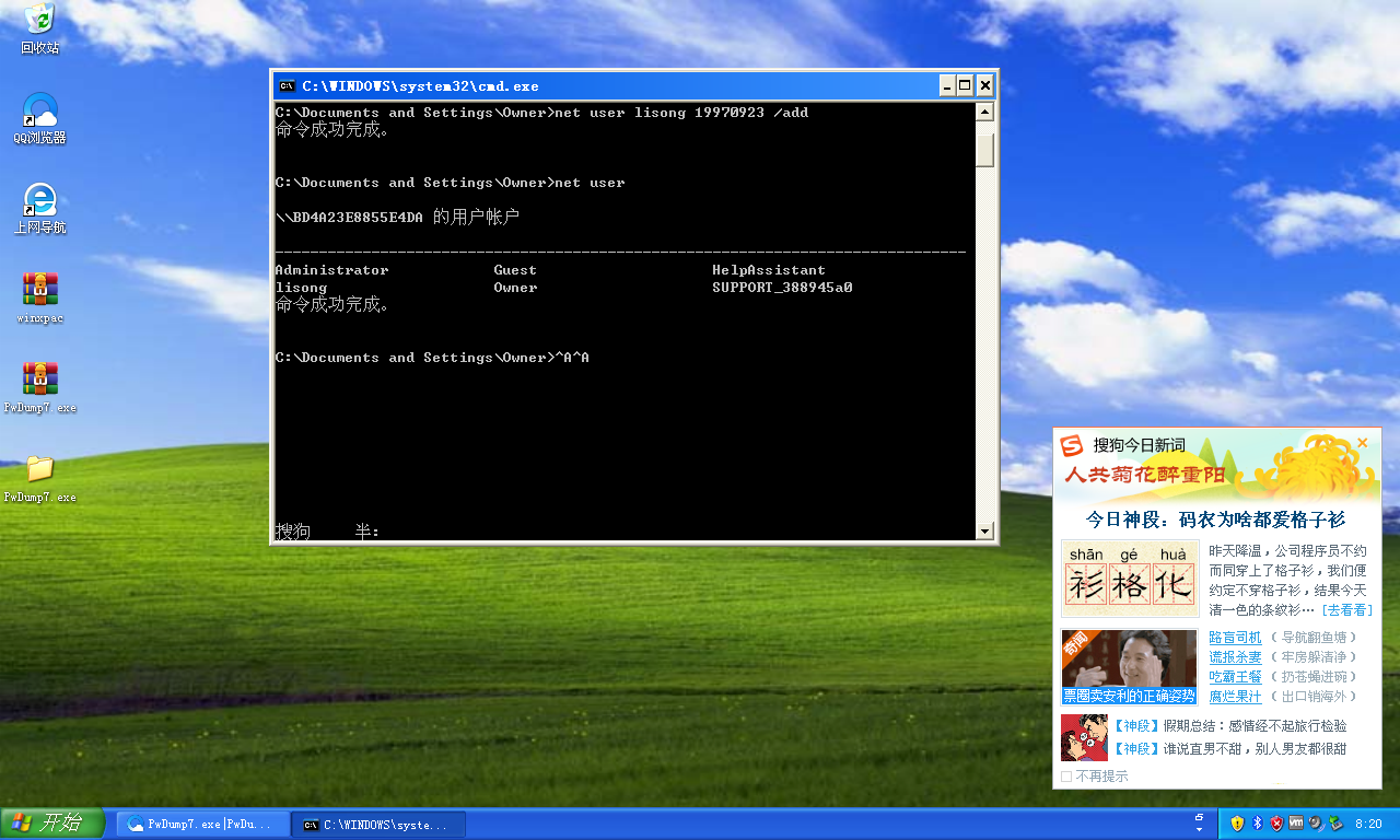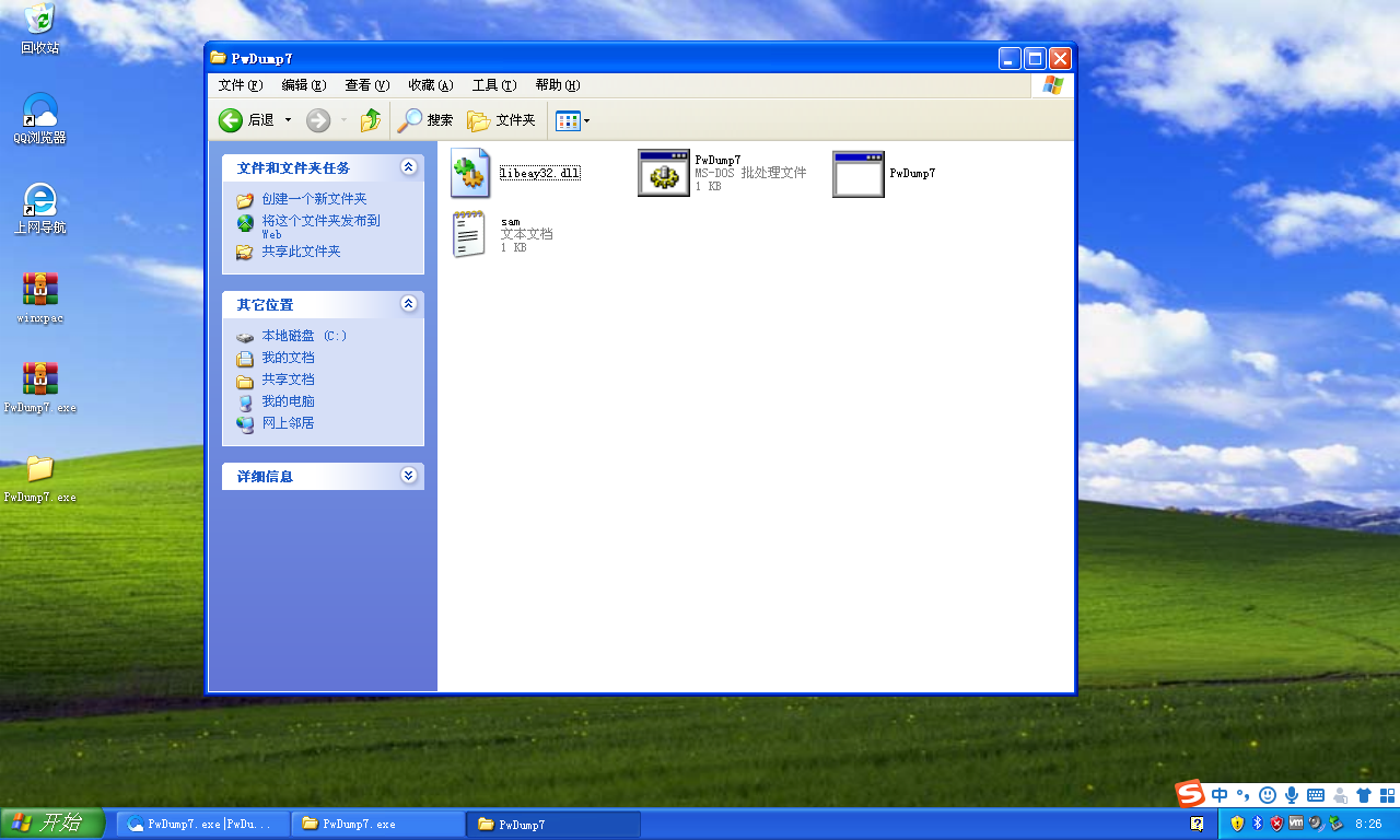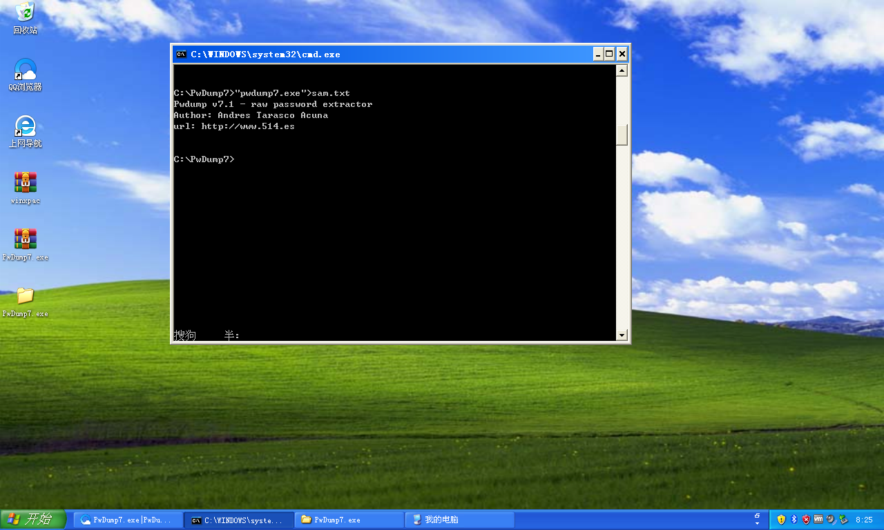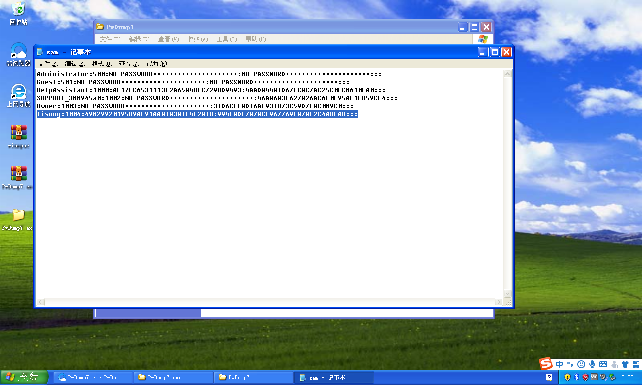 2.使用pwdump软件导出本机的sam文件